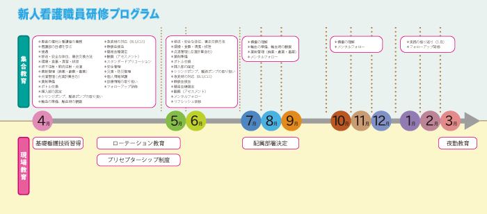 (プリセプティ)に先輩看護師(プリセプター)がつき、一定期間マンツーマンで指導・教育して